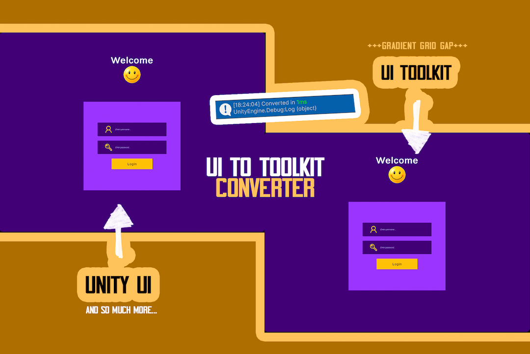 UI Toolkit Pro can save you hours/days and a lot of work by converting your UI from Unity UI to Unity UI Toolkit within milliseconds/seconds. The package also includes components that can incorporate HTML-like features such as grid layouts, gap settings, gradient backgrounds and the Unity Rect Transform system.
