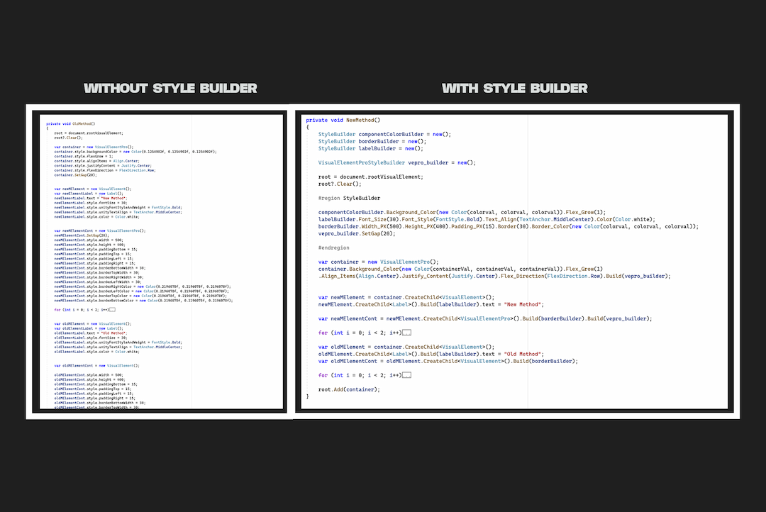 This is an extension method that makes it easier to style UI Element through C# by Chaining the methods instead of the traditional way of doing it line by line.