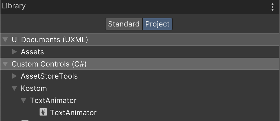 Open the UI Builder and Navigate to Library > Projects > Custom Controls > Kostom > TextAnimator